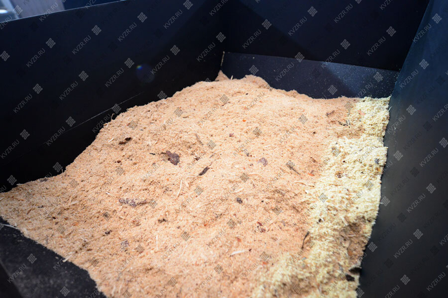 Бункер ворошитель для опилок предотвращает зависание топлива, обеспечивает равномерную и непрерывную работу.