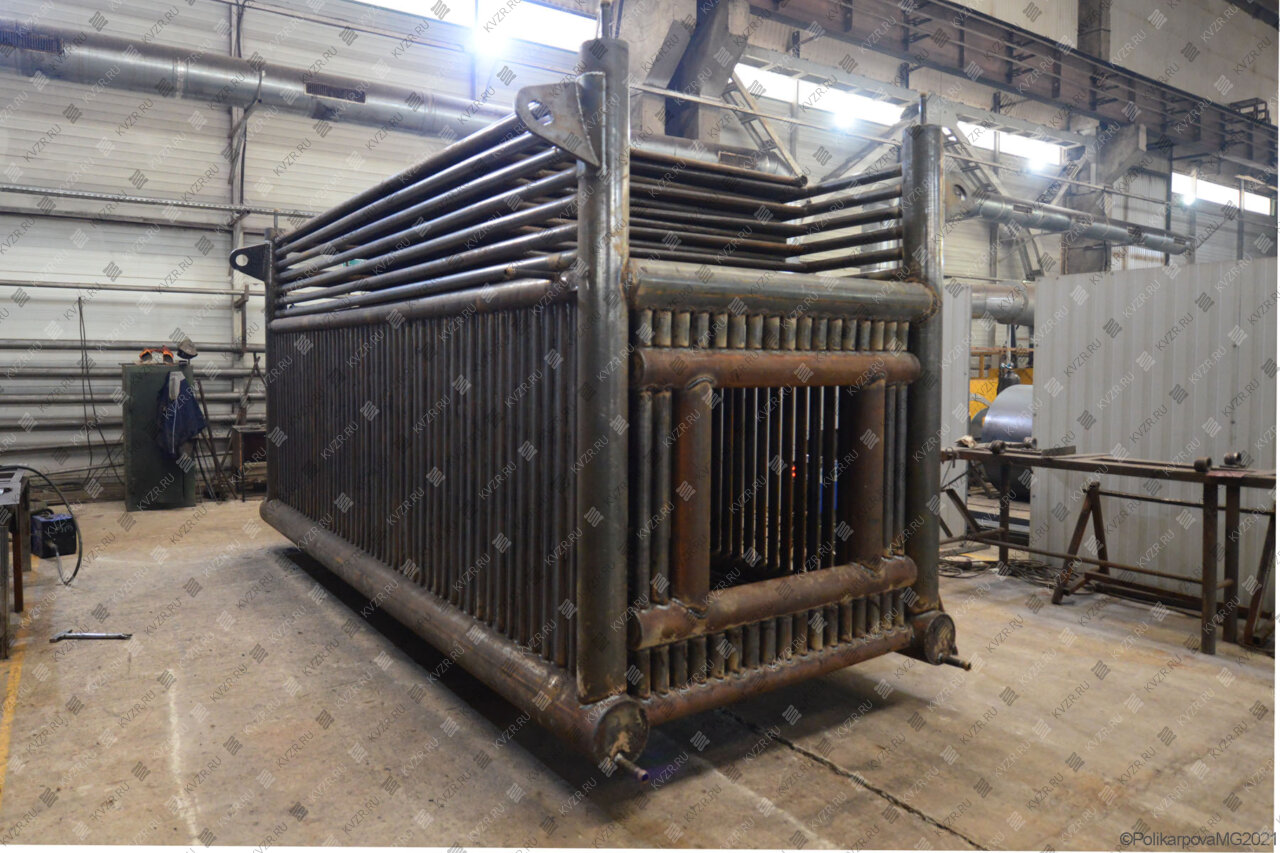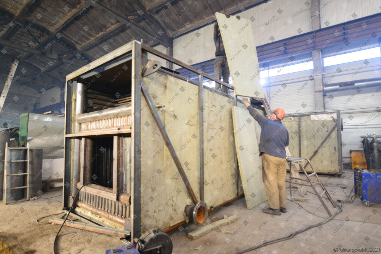 Все водогрейные котлы 3 5 МВт нашего производства - стальные, горизонтальные, водотрубные, прямоточные и компактные. Трубная часть котельного блока выполняется из труб различных диаметров, материал труб сталь 10 и 35. Блок снаружи обваривается стальной охлаждаемой полосой, поэтому в наших котлах исключена возможность задымления котельного зала. Снаружи на каркас из профильной трубы и швеллера крепится утеплитель и декоративная обшивка из полимерного листа. В обшивке предусмотрены лючки для очистки поверхностей нагрева.